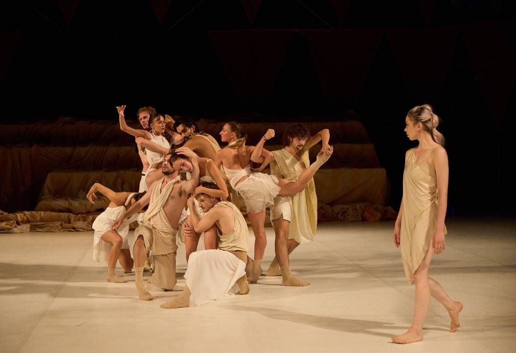 Performance-Installation von Tänzer:innen der Dresden Frankfurt Dance Company